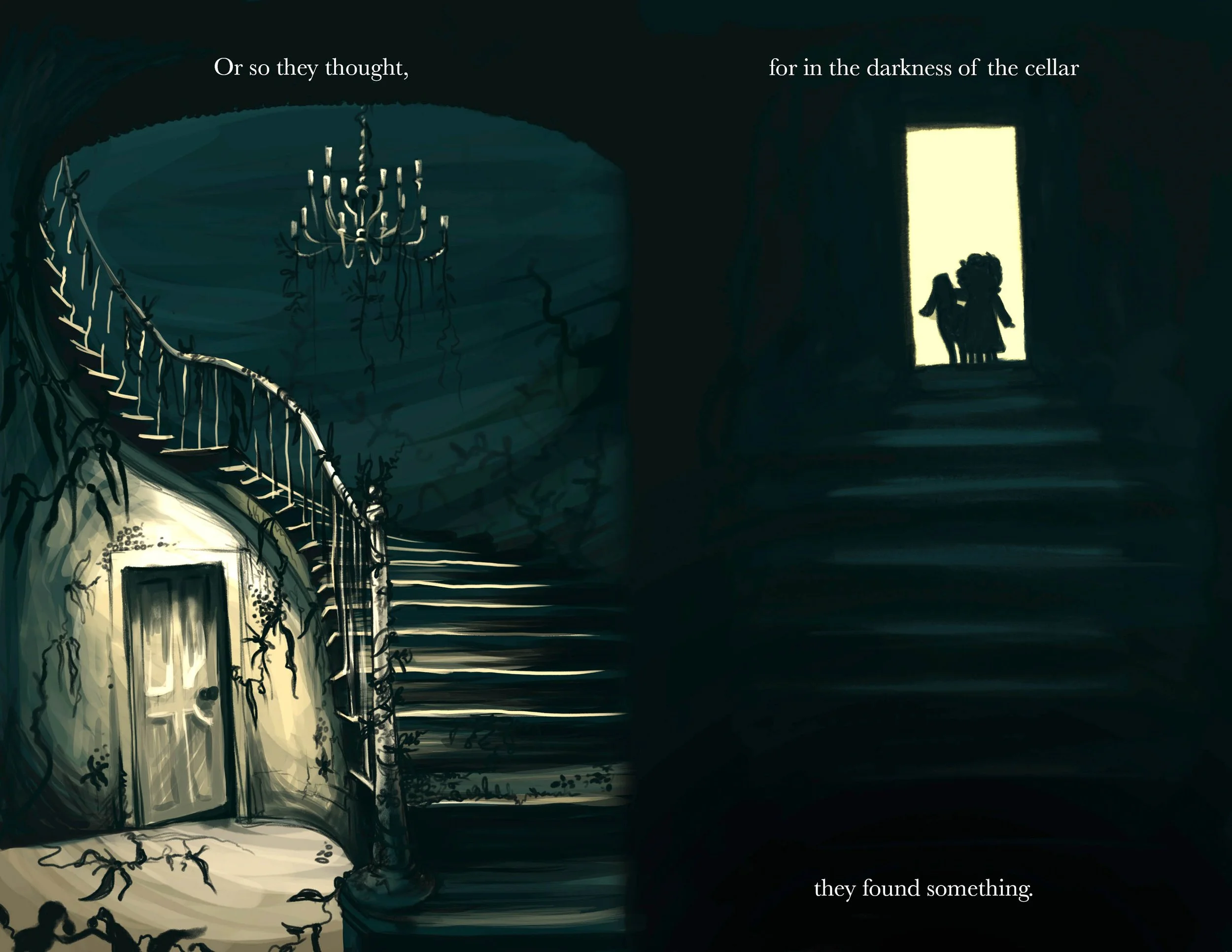 The storybook style of the this project allows readers to explore themes of loss, trauma and isolation through age appropriate narrative. The palette, layout, and visual motifs were chosen to balance melancholy with wonder, and enhance the minimalistic writing style.